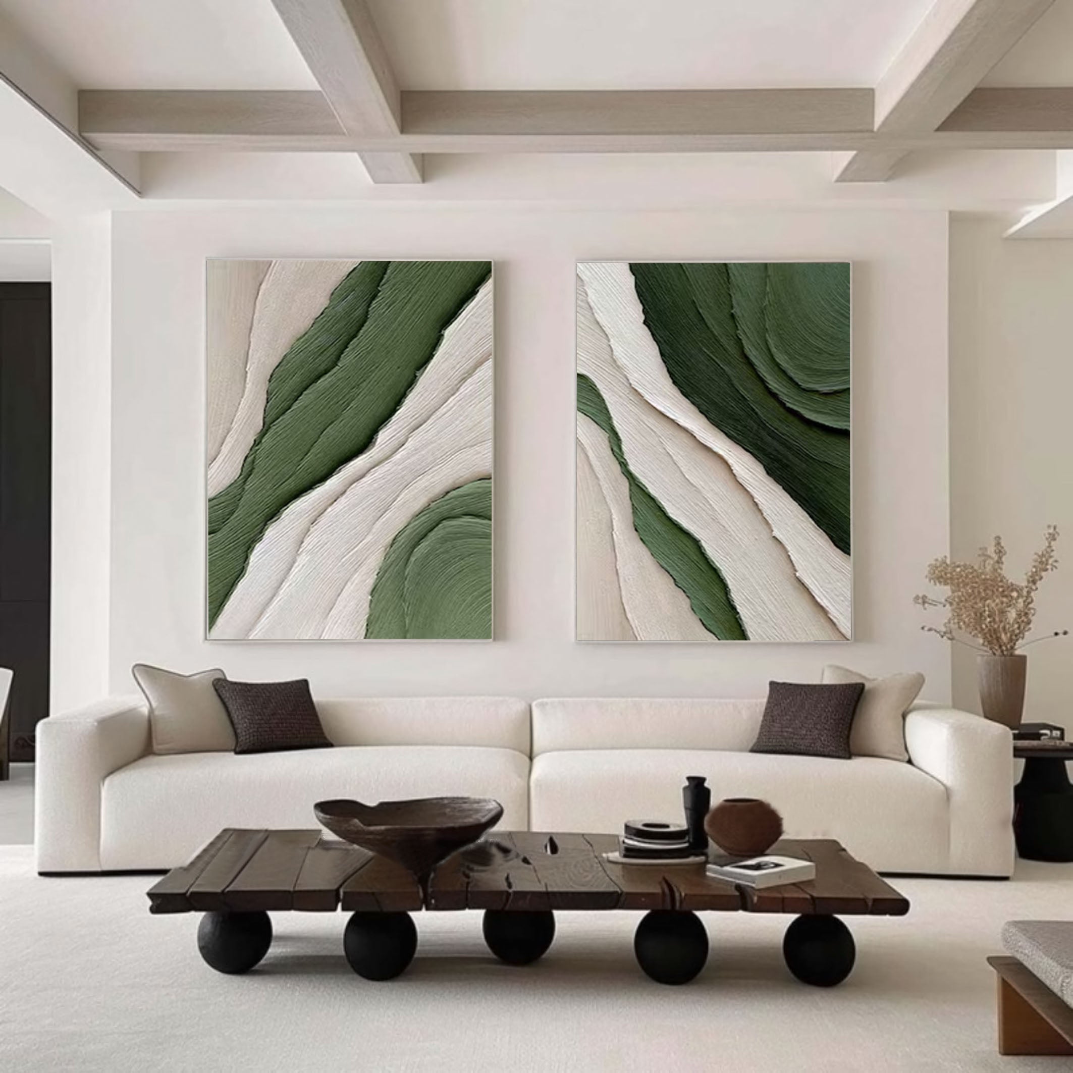 مجموعة من قطعتين من فنون الحائط المعاصرة ذات الملمس الأخضر والمحايد #MMS067