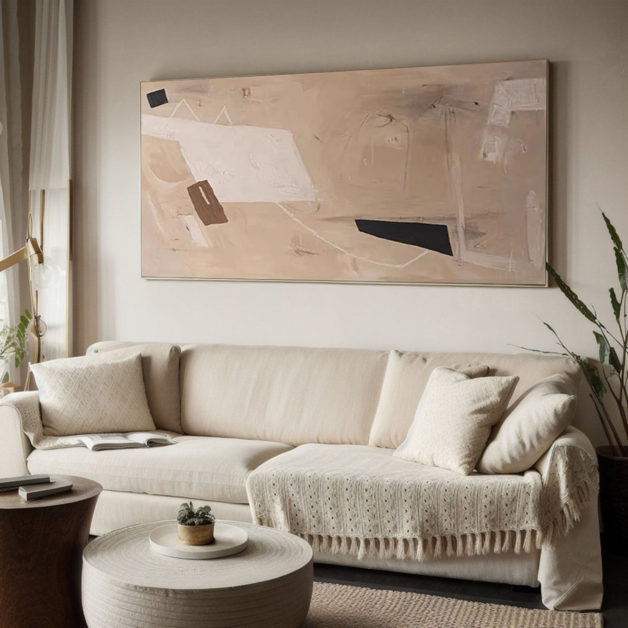 Neutral Abstract Wall Art with Geometric Accents #AB050